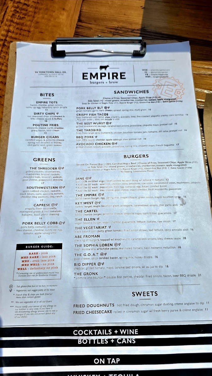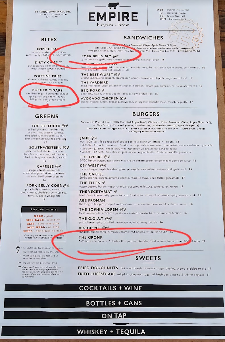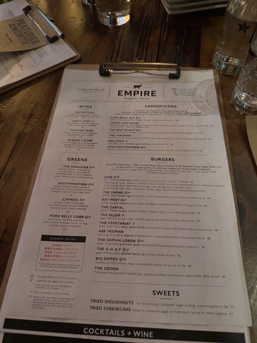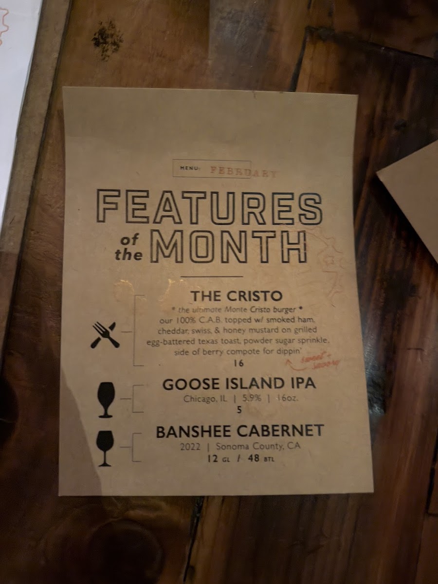 double C.A.B. patty, cheddar, fried onion straws, applewood smoked bacon, beer bbq drizzle, pretzel bun